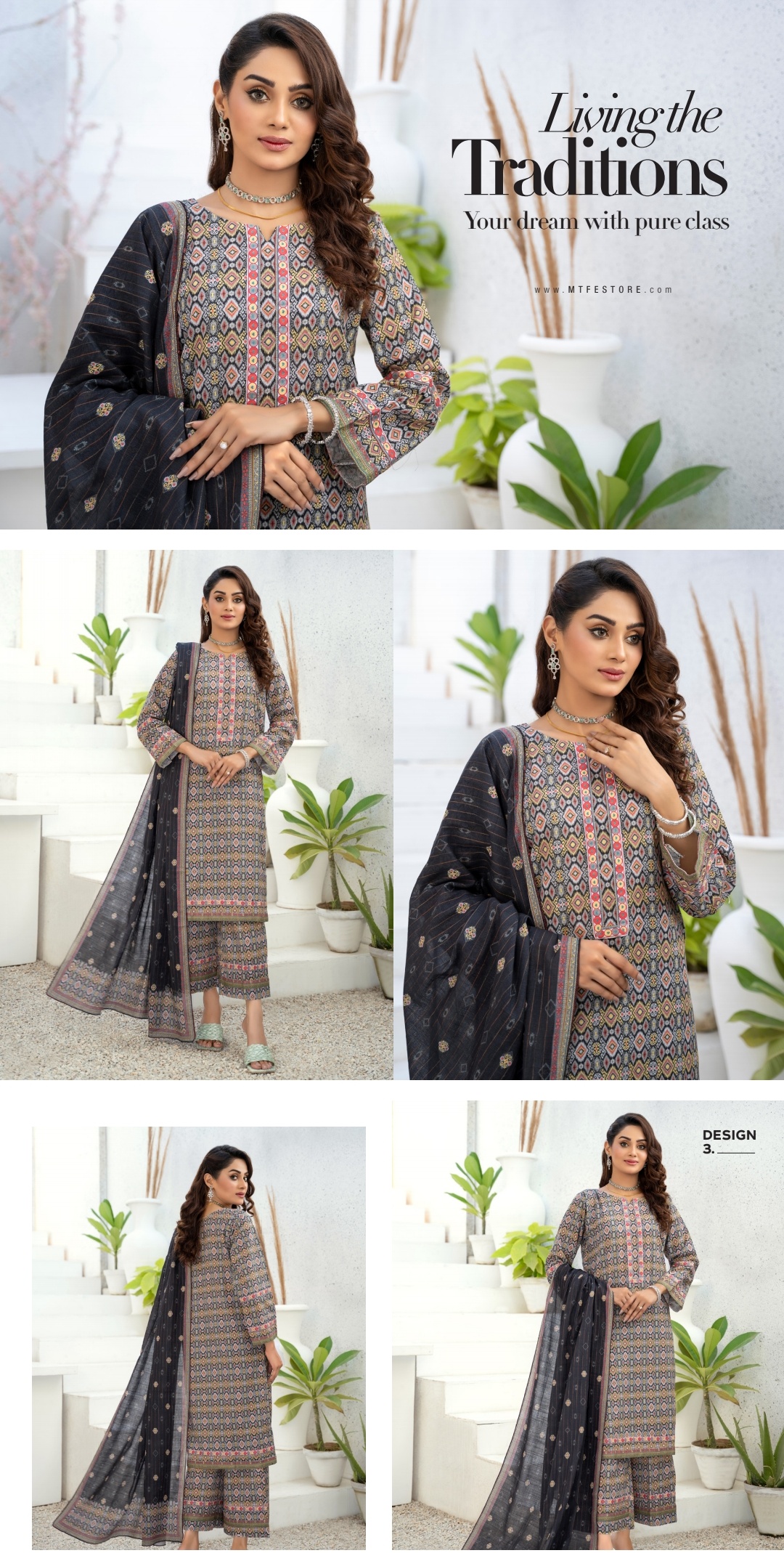 3 Piece All Over Printed Khaddar Dress